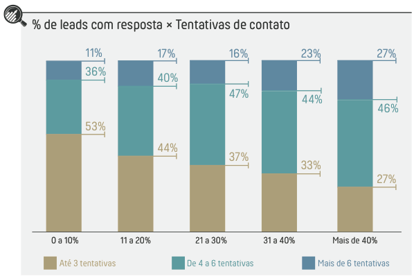 Enquanto mais de 40% dos representantes de vendas fazem até 4 tentativas de contato com um prospect, o número de respostas é maior após a 7ª tentativa. É o que nos mostra a pesquisa da Inside Sales Brasil.