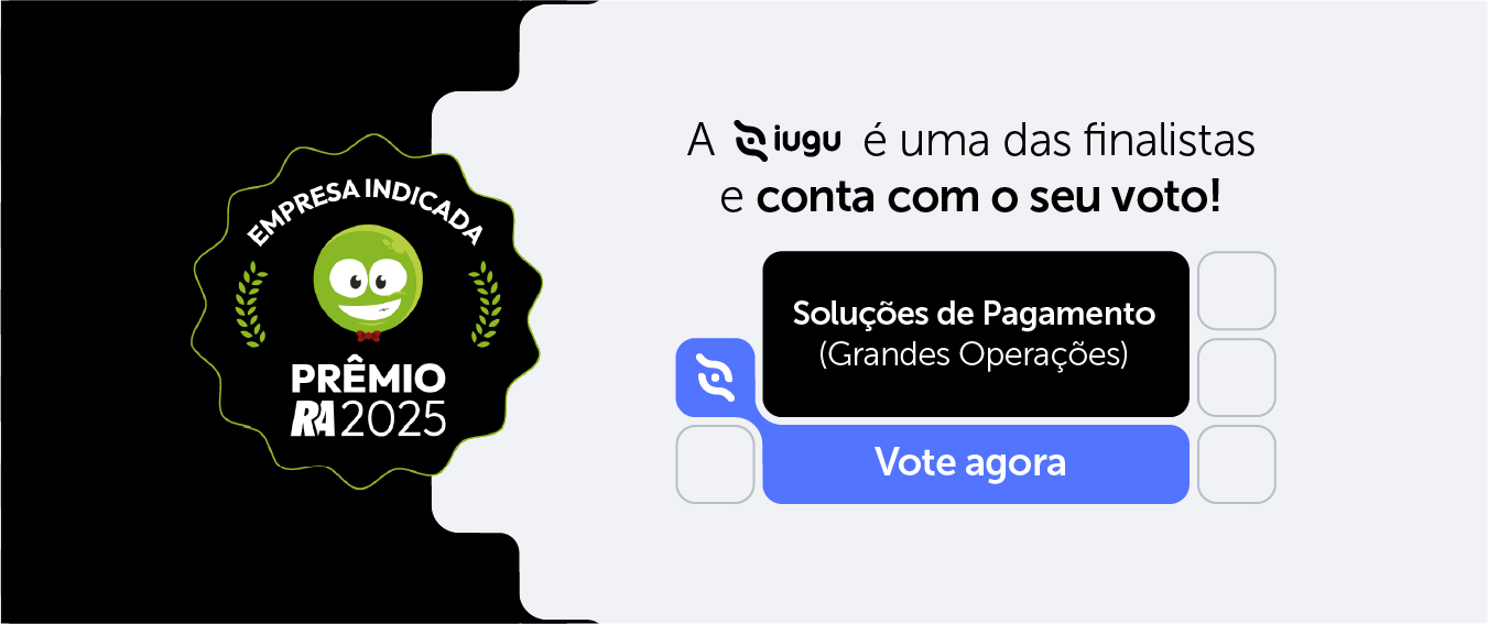 A iugu está concorrendo ao Prêmio Reclame Aqui 2025 na categoria Soluções de