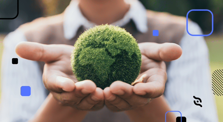 Mão segurando celular com artes relacionadas ao setor financeiro.